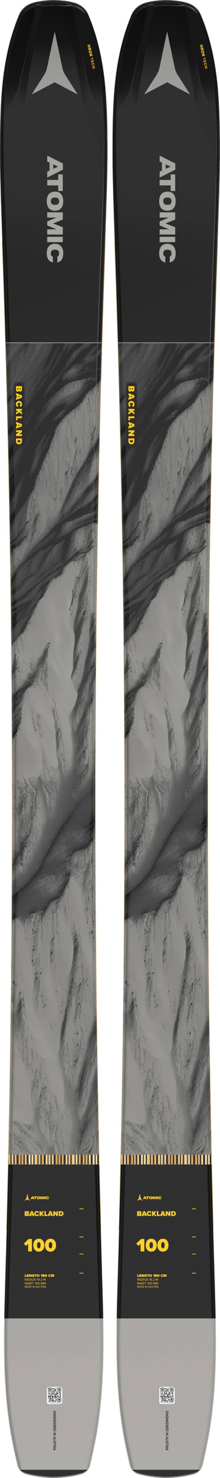 Lightweight, wide and strong, Atomic Backland 100 is one of the most versatile freeride touring skis in the Backland collection and capable of performing in the widest range of snow conditions and in any terrain. Built for adventurous days in the mountains, the Ultra Power Woodcore and Full Sidewall construction offers the perfect combination of lightweight touring capabilities and versatile freeride functionality. A Carbon Backbone runs the length of the ski like a backbone, providing exceptional agility and solid edge grip on the down. Intuitive and easy to handle, the revolutionary HRZN Tech in the tip allows the ski to bust through even the most challenging conditions. For the ultimate freeride touring set up, Atomic also offers pre-fit skins to match.