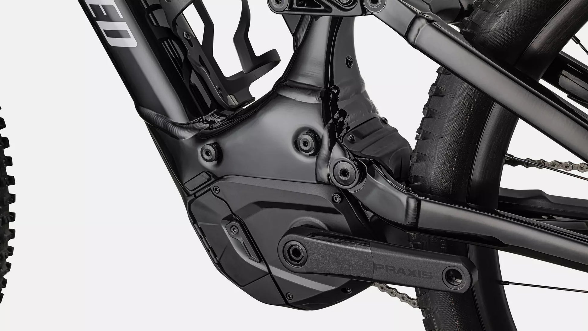 A dedicated mixed-wheel size design with a 27.5” wheel in the back and 29” up front delivers a nimble ride that carves circles around other full-power e-MTBs. A generous cockpit centers you on the bike, optimizing traction and corner control. The low bottom bracket, slack headtube angle and reduced fork offset keep things stable in the rough.