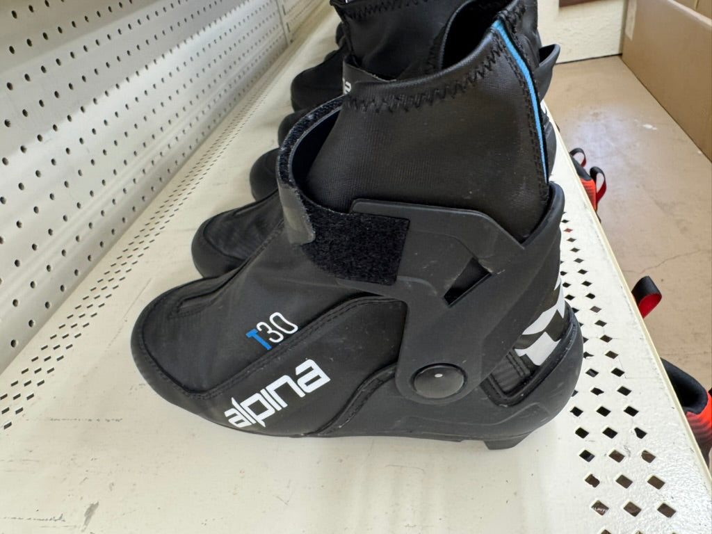 The Alpina T30 offers more stability than a standard entry-level boot. It features a plastic power cuff (the black strap around the ankle) which provides extra support for keeping your balance on downhills or in softer snow, while still allowing the soft forefoot flex needed for classic kicking.