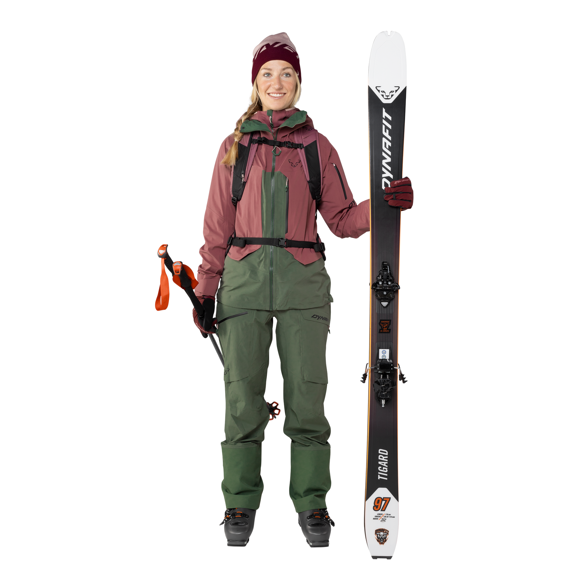 Durable weather protection combined with maximum freedom of movement: The Tigard 3L Stretch Jacket for women is the ultimate companion for backcountry ski touring and freeriding. To ensure you can give your all in powder, your clothes must also protect you ideally. On the climb, high breathability is required so you don’t overheat. At the same time, you must be protected reliably from wind and weather so you get back down the mountain dry and warm. And of course you can only achieve your best performance if you can move freely and your clothes don’t bind. As a mountain athlete, naturally the environment is near and dear to you. That makes the Tigard 3L Stretch Jacket the perfect choice! It is impressive from start to finish, both technically and also when it comes to sustainability. Made of recycled materials, this waterproof, PFC-free jacket guarantees total protection from the elements with its waterproof rating of 20,000 mm. At the same time, it offers outstanding breathability and maximum flexibility with its four-way stretch. Whether climbing up steep terrain or racing down the hill in chest-deep pow, the Tigard 3L Stretch Jacket makes every move you do. It also offers impressive comfort so you can enjoy your tour to the fullest. This stylish freeride jacket features two front pockets and a small sleeve pocket for your ski pass. Cuffs can be adjusted with hook-and-loop closure so snow stays out. A stretch hood is adjustable with one hand and can be worn over your hood in especially unpleasant conditions. Of course there are venting zippers underarm for extra cooling and a powder skirt you can attach to the Tigard 3L Stretch Pant as needed. Tigard 3L Stretch Jacket – everything you need in the backcountry.